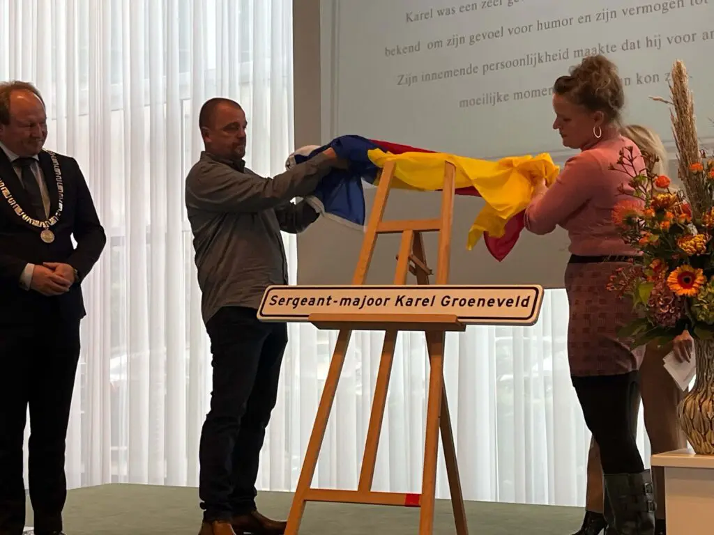 Met instemming van de nabestaanden en Gemeente Almere wordt de naam van Karel Groeneveld op het viaduct bij Almere-Buiten (daar waar de S105 over de A6 kruist) vermeld. Het viaduct krijgt de naam ‘Sergeant-majoor Karel Groeneveld’. Hiermee biedt dit object een passende en blijvende herinnering aan hen die zich onvoorwaardelijk voor de vrijheid en veiligheid van anderen hebben ingezet.