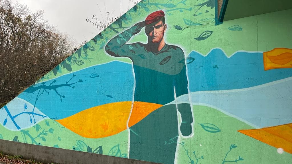 Hij wordt nog op een andere manier geëerd op het viaduct, namelijk met een afbeelding van een saluerende soldaat, gemaakt door graffitiartiest Roy Wagemans.